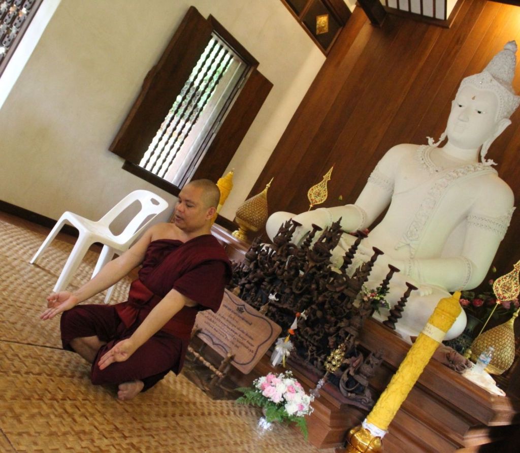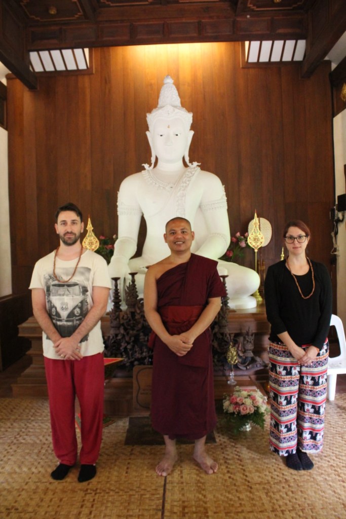 La giornata è iniziata con un’esperienza profondamente spirituale: un incontro con un monaco buddhista. Ci siamo recati in un piccolo monastero immerso nel verde, un luogo che emanava pace e tranquillità. Il monaco ci ha accolto con un sorriso sereno, era molto simpatico e parlava anche un po’ di italiano.