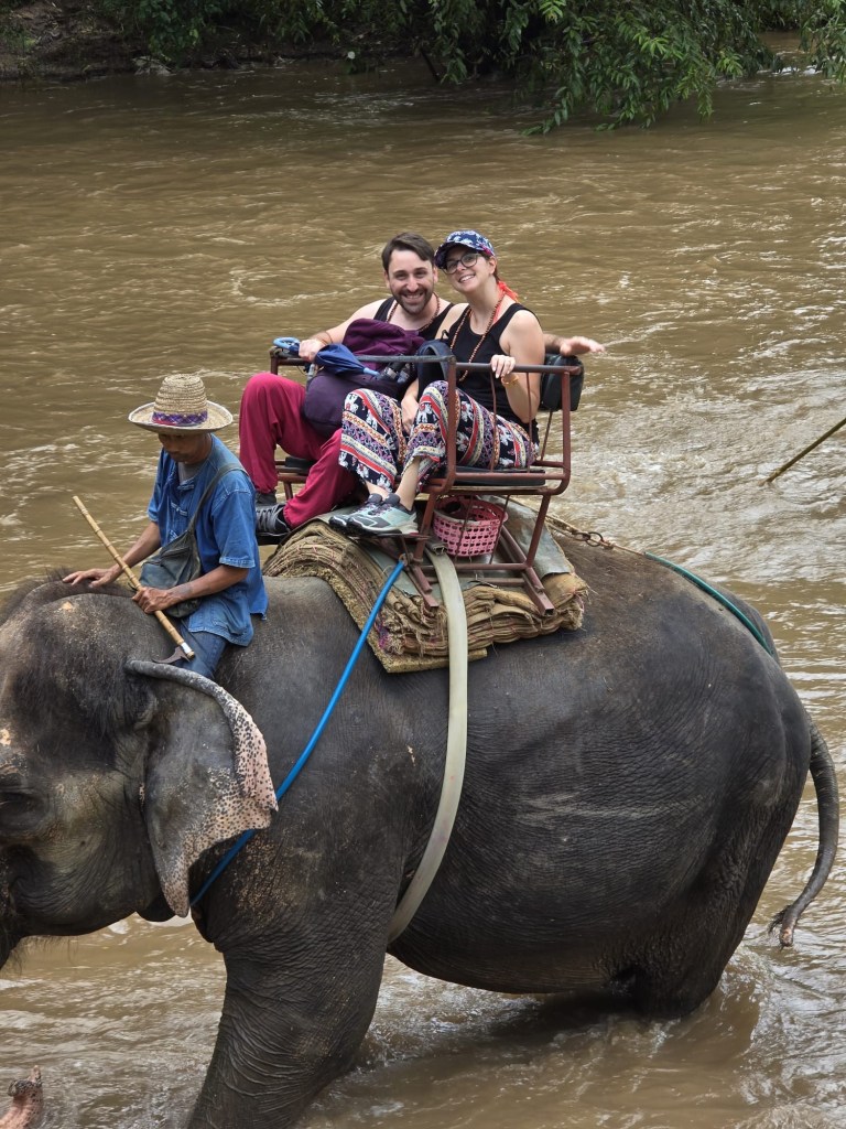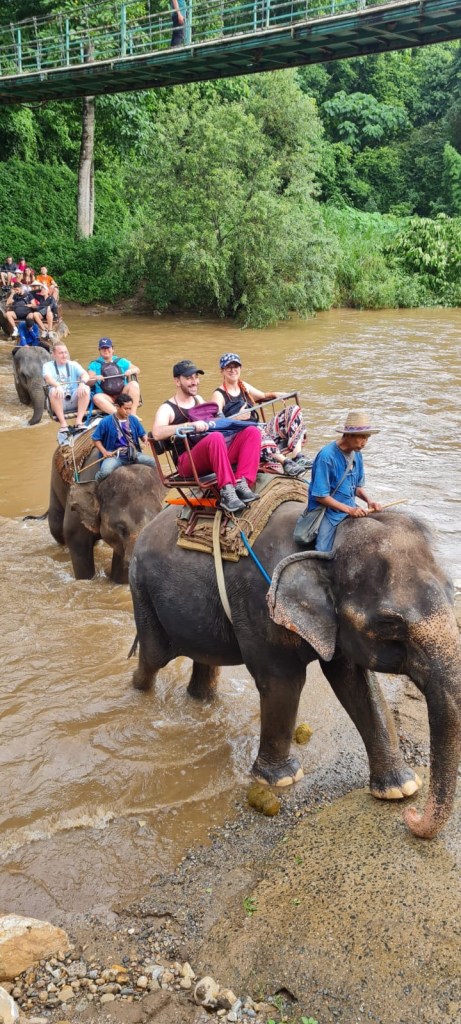 Salire in groppa a un elefante è stata un’esperienza unica. Nonostante l’altezza impressionante e il movimento oscillante, abbiamo goduto di una passeggiata attraverso la giungla e nel fiume. Lenti ma potenti, questi colossi sovrastano la natura. Cecilia, inizialmente impaurita, si è presto lasciata conquistare dalla gentilezza e dall’intelligenza degli elefanti.